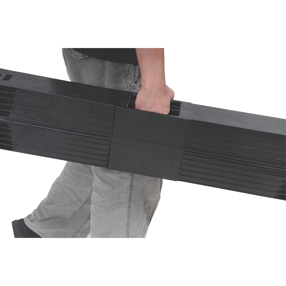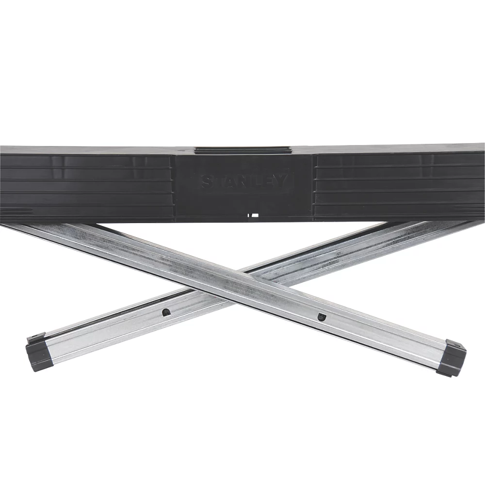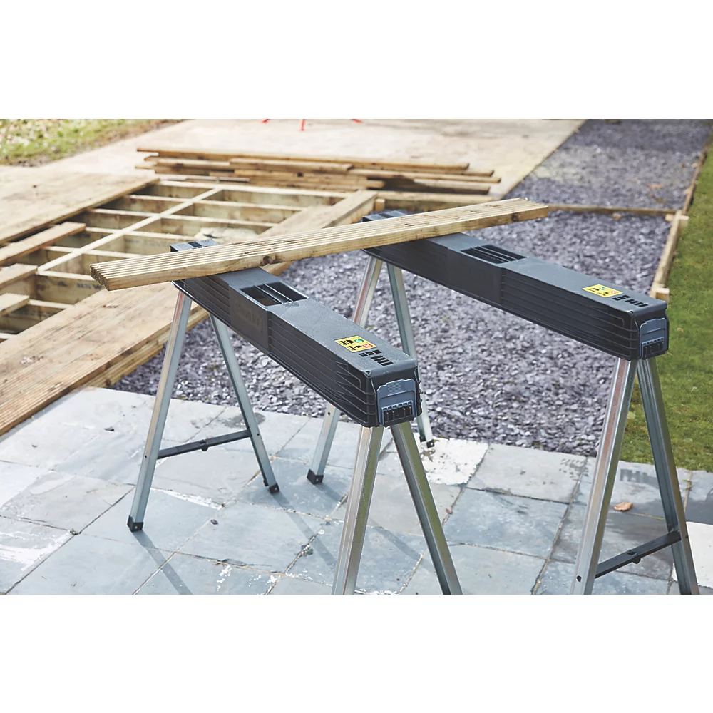 Tréteaux robustes avec pieds en métal. Portables et faciles à installer. Comprennent une poignée de transport et une bandoulière.