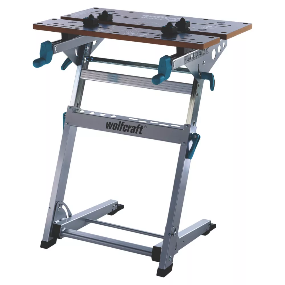 Que ce soit comme table de travail, de serrage ou de support machine, le MASTER 700 est difficile à battre en termes de polyvalence et d’ergonomie. Le panneau MDF extensible de 19mm d’épaisseur peut être incliné en continu de 0 à 70°, pour permettre une installation sûre des scies à onglets ou supports de perçage. Fixez solidement les pièces avec une largeur de serrage maximale de 13cm entre les plaques de bois du plan de travail. Pour des largeurs de serrage plus grandes, allant jusqu’à 43,5cm, utilisez les mors de serrage fournis. Pour protéger votre dos pendant le travail, réglez individuellement la table à votre hauteur grâce au réglage de hauteur en continu à ressort. Mécanisme à ressort de déverrouillage à une main pour replier la table. Idéal pour un rangement peu encombrant dans un atelier à domicile. Cette table de travail et de support machine légère est très flexible mais impressionne également par sa stabilité exceptionnelle et la possibilité de supporter sans problème des charges pouvant atteindre 150kg.